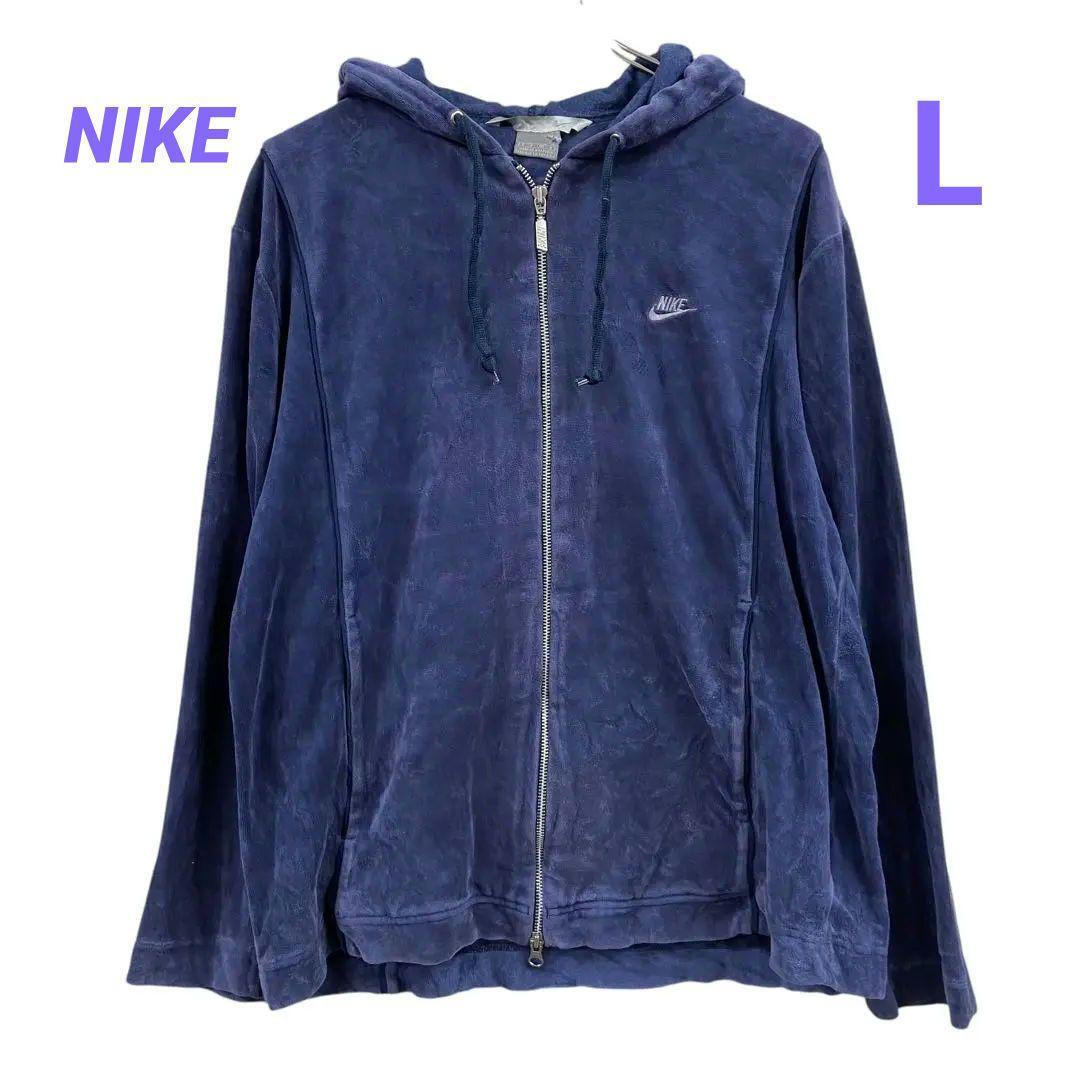- ナイキ レディースパーカー 紺 L フルジップ ベロア 秋冬【1054】