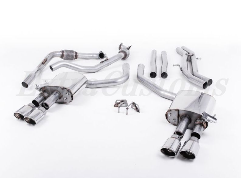 > MILLTEK ミルテック キャタバックエキゾースト アウディ S4 3.0 ターボ V6 B9 セダン&ワゴン non-resonated 4本出し ポリッシュ オーバル