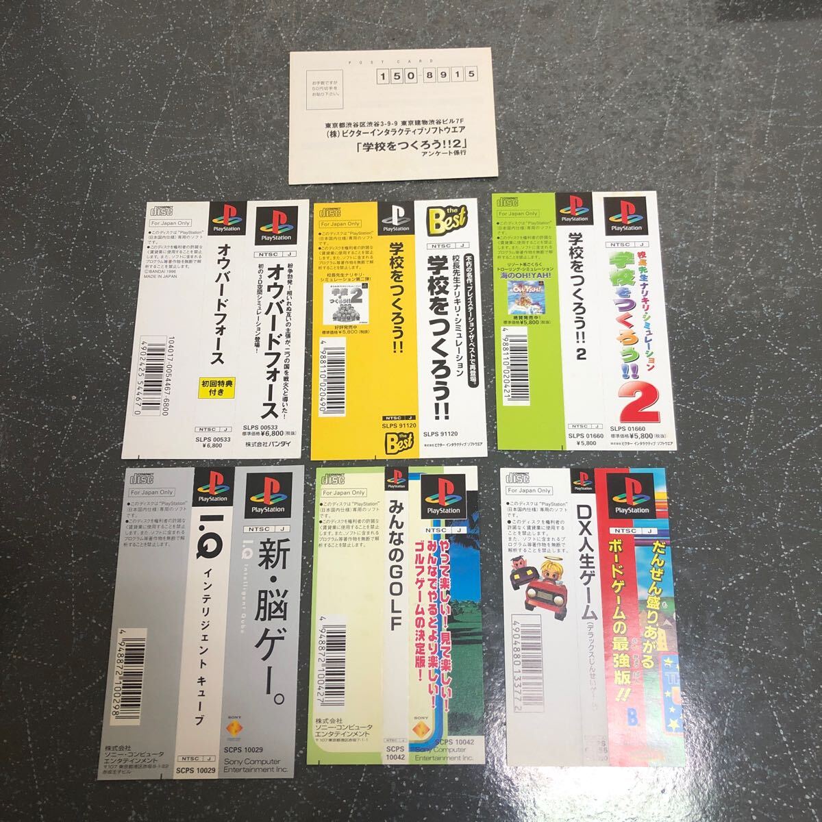 > 【匿名送料無料】PS1帯6枚+ハガキ1枚 学校をつくろう、学校をつくろう2、オウバードフォース,みんなのGOLF,DX人生ゲーム,I.Q【K-514】