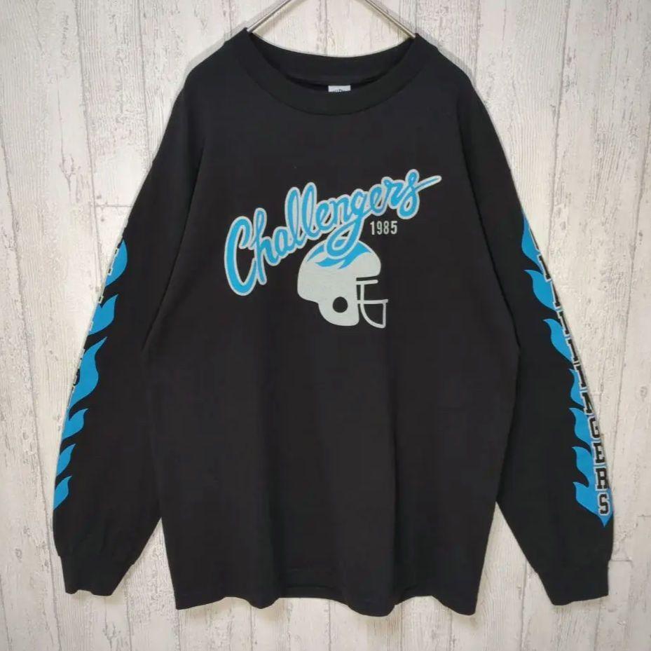 - CHALLENGER ロンT ファイヤーパターン 袖プリント アメフト #h1088