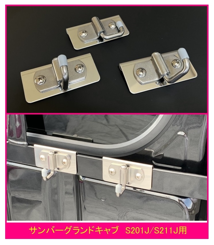 > ◎軽トラ 荷台鳥居(アングルポスト)用 便利アイテム 多目的ステンレスフック 3個SET サンバーグランドキャブ S201J