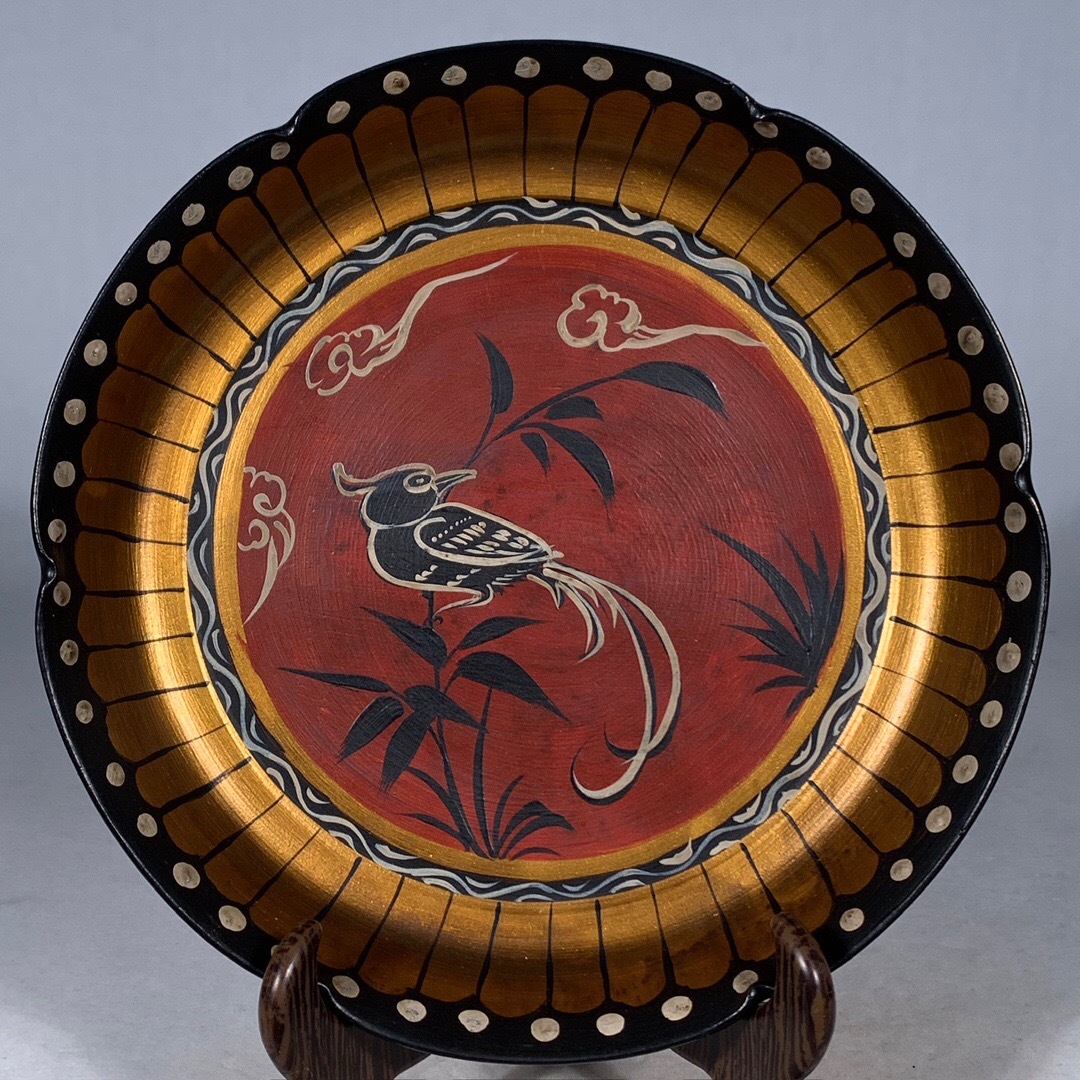 - ▽鴻▽ 宋 汝窯 彩繪 花鳥紋 葵口盤 古陶瓷品 置物 古賞物 中国古玩 中国古美術