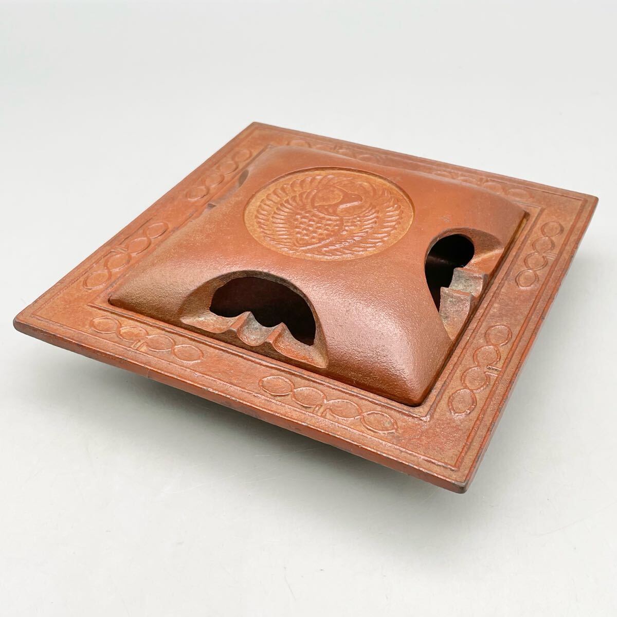 - 南部鉄器 鶴 角 灰皿 アンティーク レトロ 約180×180×60mm ブラウン 茶 伝統工芸 工芸品 喫煙具 吸殻入れ 和雑貨 小物入れ 煙草 タバコ