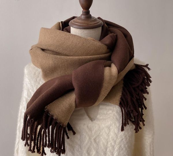 > 美品 * 上質 ストール 大判 ストール エレガント オシャレ 通勤防寒 カシミヤ リバーシブル仕様 配色 ストール マフラ * コーヒー