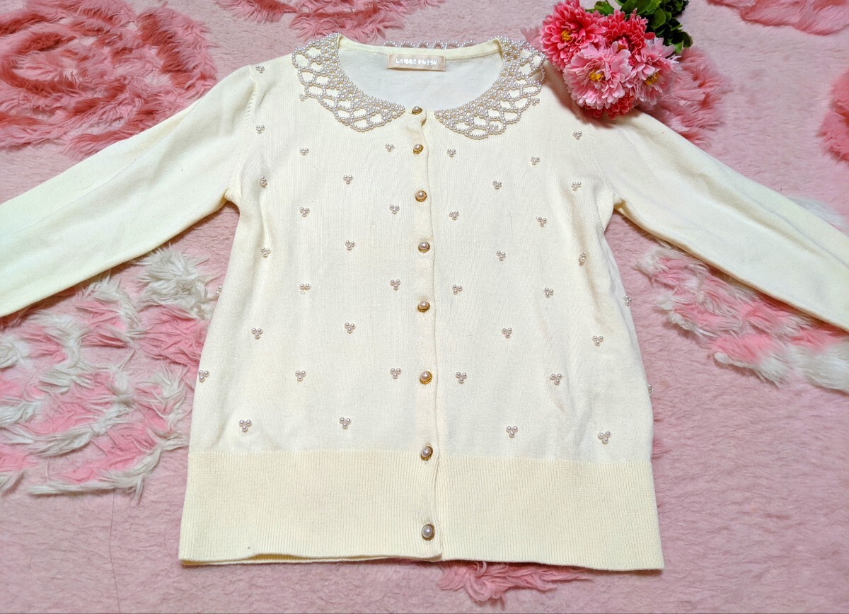 - LAISSE PASSE◆レッセパッセ◆明るい◆ベージュ◆真珠型◆ビジュー◆超!ゴージャス&素敵◆私の超オススメ!◆カーディガン