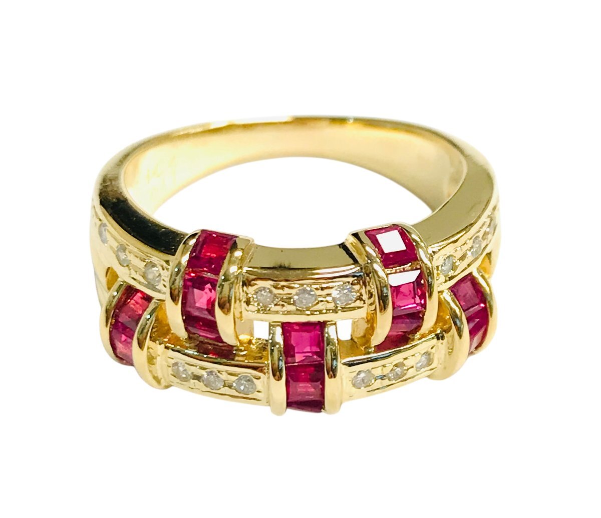 - qoj.Z9D05 K18 ゴールド 天然ルビー×ダイヤモンドリング 中石1.04ct/枠石0.11ct 13号
