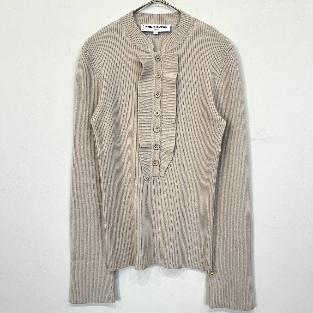 - SONIA RYKIEL PARIS リブニットプルオーバー ソニアリキエル シミあり SR刻印 チャーム付 ピンクベージュ