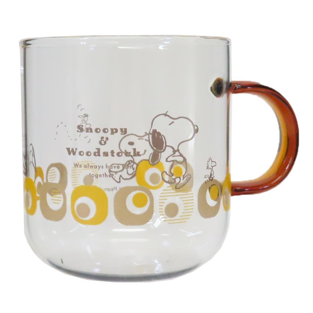 - スヌーピー カラーハンドル耐熱ガラスマグ マグカップ ブラウン キューブ ピーナッツ キャラクター