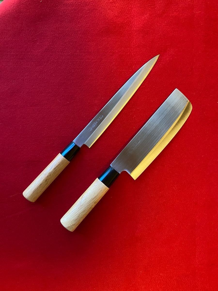 - ☆関の包丁2本セット・刺身+菜切・濃州正宗作・柄部天然木(白木)