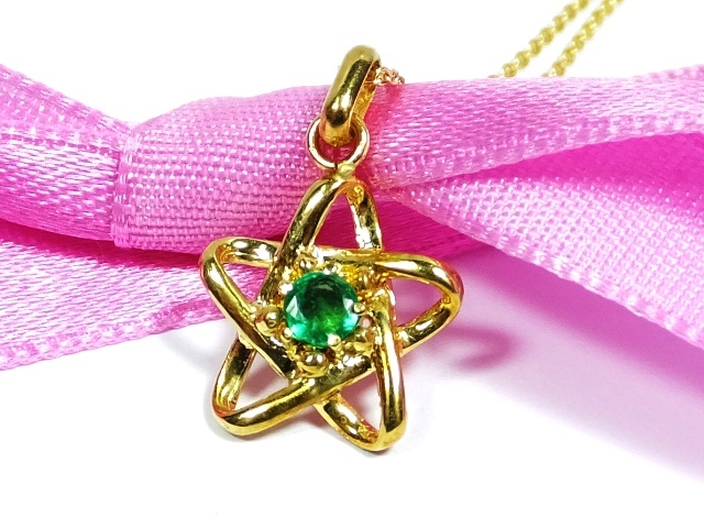 - 486.3◎5月の誕生日 誕生石/蟹座 山羊座の星座石/プレゼント◎K18金 ゴールド エメラルド 人気 スターモチーフ ネックレス ジュエリー 通販
