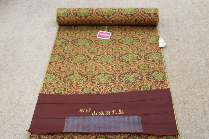 - きもの今昔8223 染羽尺反物 シルラック大島風生地にレンガ色濃淡更紗柄
