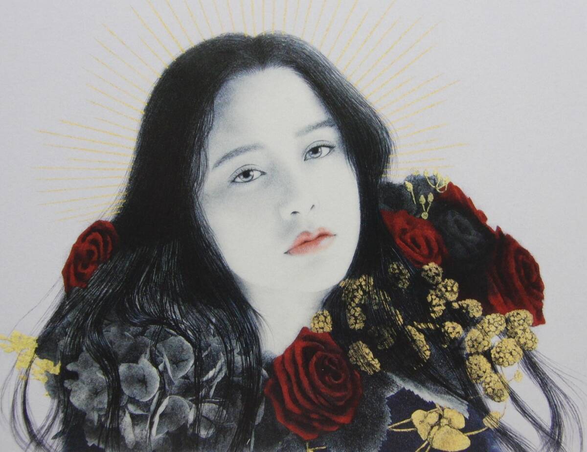 - 志賀絵梨子、【希望の乙女】、希少な額装用画集より、厳選、新品額装、マット額装付、状態良好、美人、日本人画家
