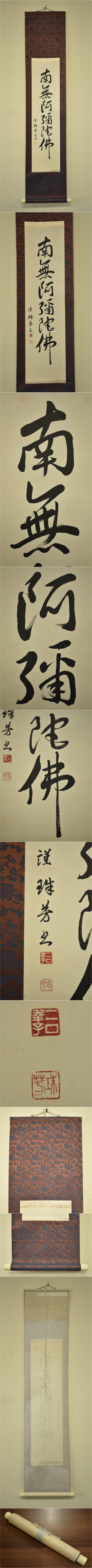 竜F977◆掛軸 二口雪子 阿部雪子 珠芳 書 六字名号 南無阿弥陀佛 紙本 仏間 仏具 叔父:石黒宗麿 師:畝村直久