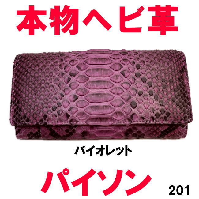 - バイオレット 紫 パイソン革 本物 ヘビ革 201 長財布 メンズ レディース
