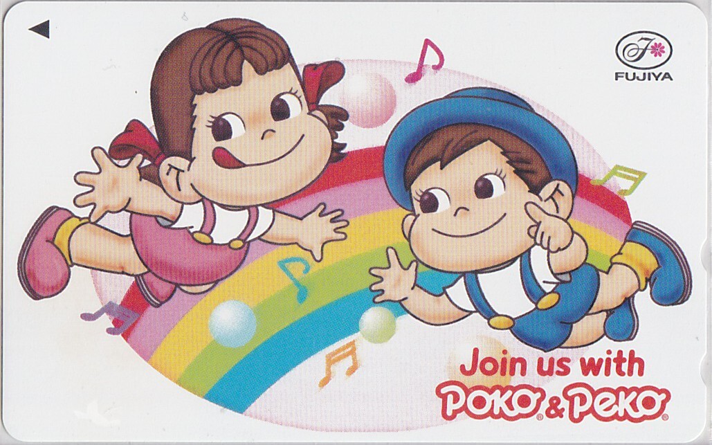 - =不二家ペコ ポコちゃん= 「虹 音符♪」販売テレカ #w