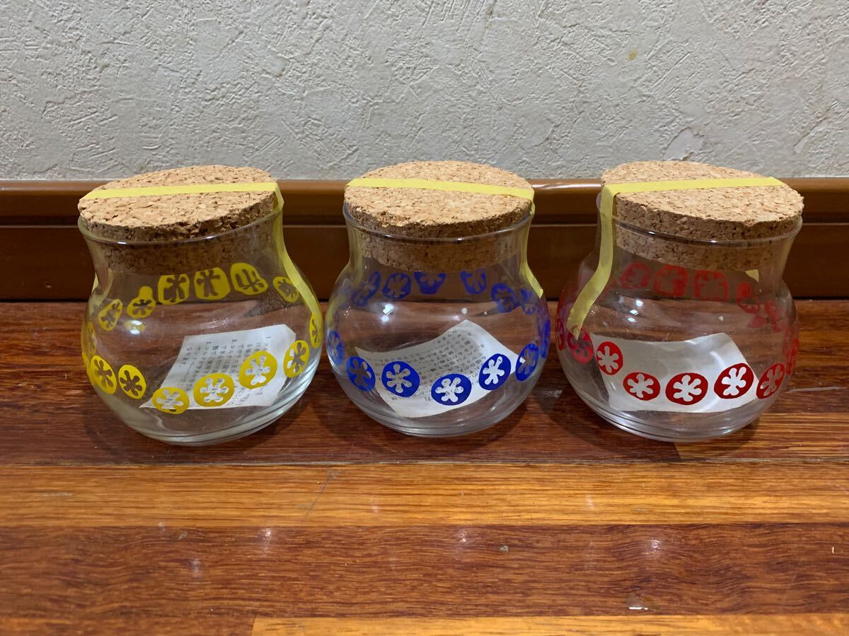 - 昭和レトロ コルク瓶 キャンディーポット ガラスポット シュガーポット 花柄 容器 レトロポップ 当時物 検索( アデリア コップ グラス