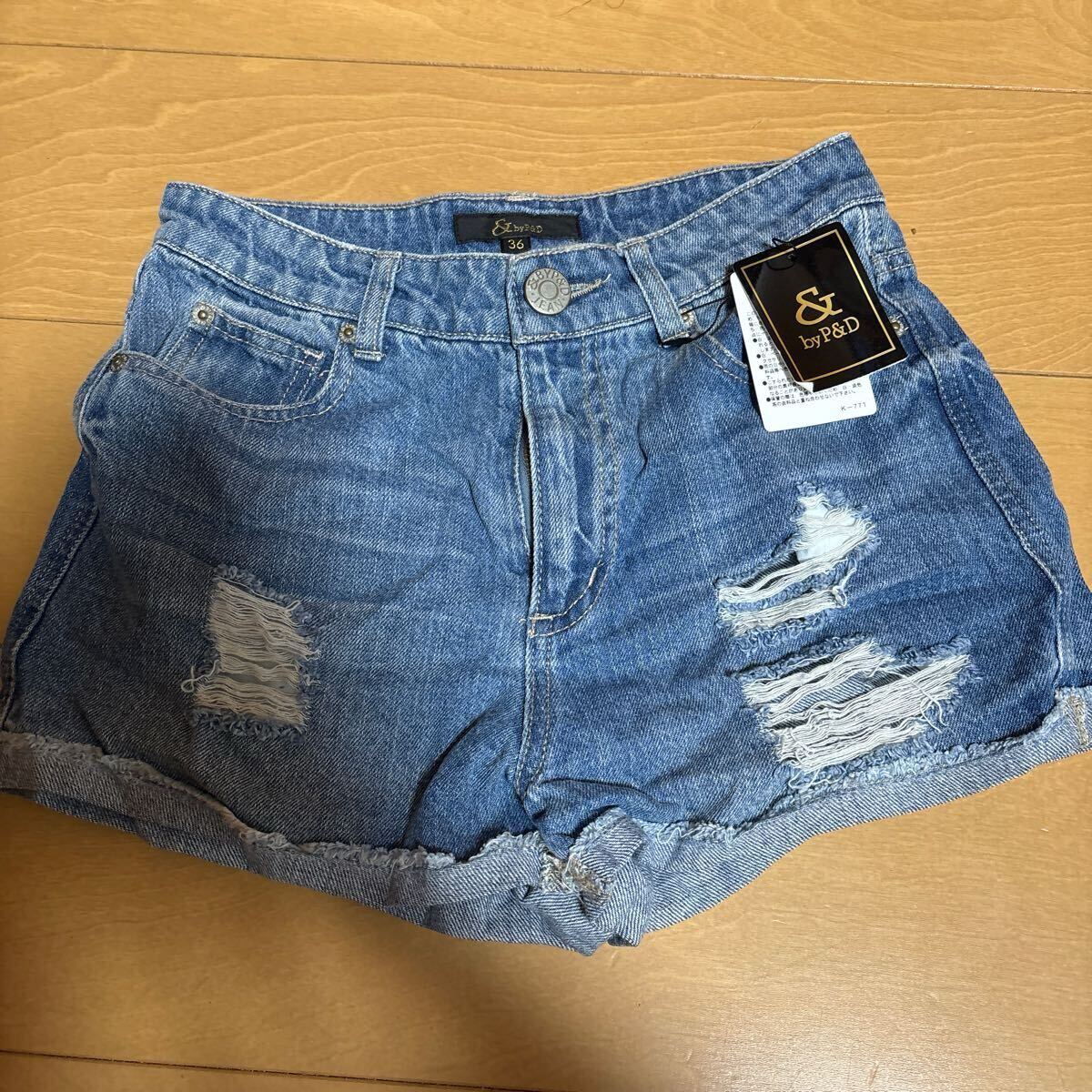 - 新品タグ付きbyp&d デニム ショートパンツ平置きウエスト33cm