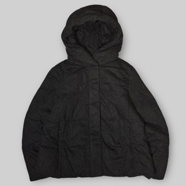 > ★ダウン&ウール★UNIQLO ダウンジャケット ブラック系 sizeS フーディ 防寒 ユニクロ 古着 クリーニング プレス済み 594
