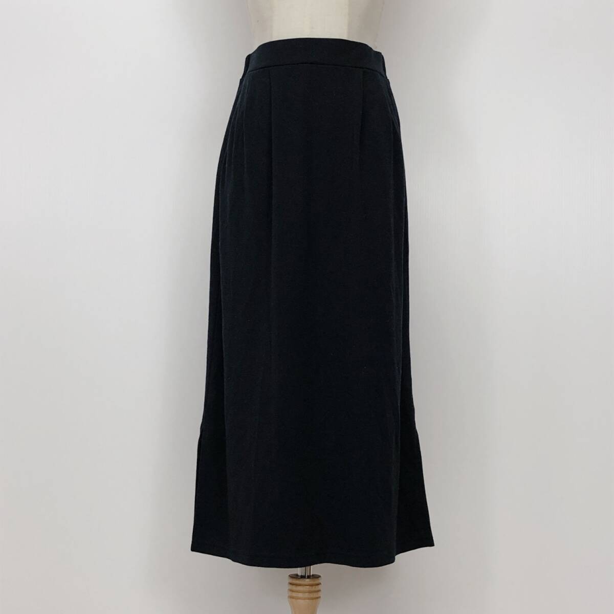 > YX793 美品 Lugnoncure レディース スカート ウエストゴム 両裾スリット 伸縮性 厚手 Mサイズ 黒 無地 シック おしゃれ シンプル 春秋