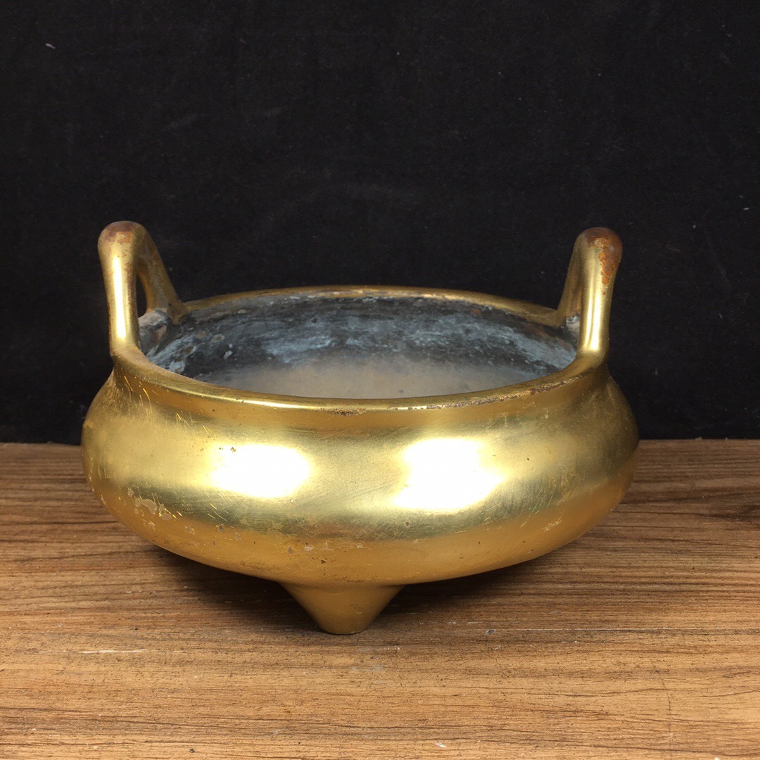 - 【仁】『銅製・塗金・雙耳・三足熏香炉・置物・賞物』極細工 古賞物 中国古玩 古美術 古美味