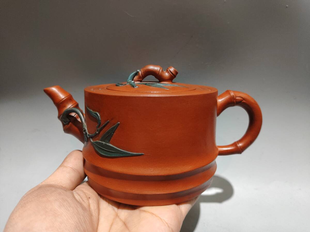 - 【超珍館蔵】紫砂壺 竹段壺 周桂珍款 紅泥 茶具 茶道品 置物 古賞物 古美術品 稀少珍蔵品
