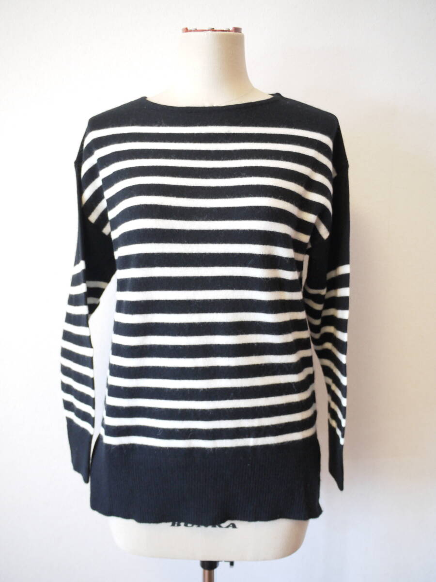 > Leilian レリアン ボーダー長袖ニット ブラック×ホワイト 7 美品クリーニング済