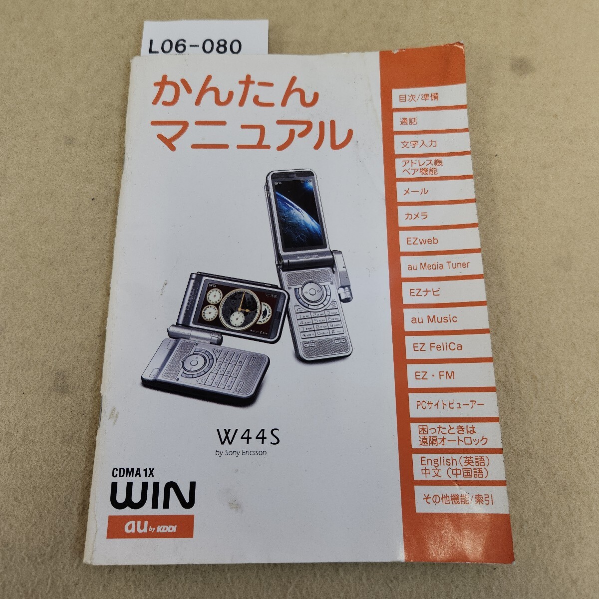 - L06-080 かんたんマニュアル W44S 携帯電話 au 説明書 2006.10月号 第1版 破れ・折れ有 傷 汚れ有