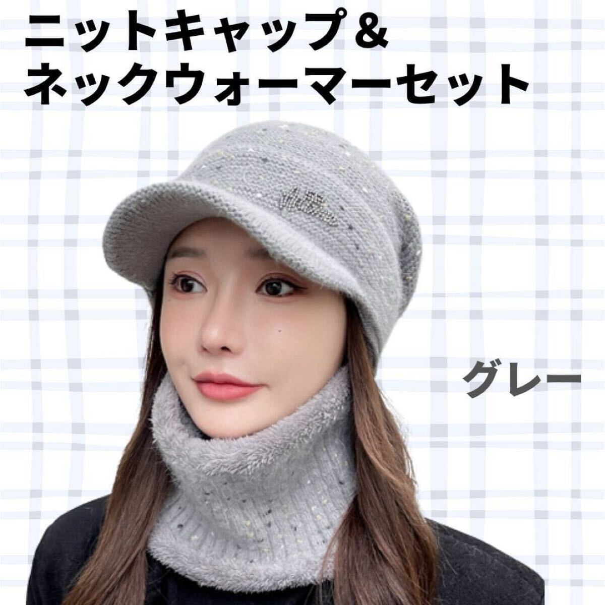 - ニットキャップ ボア ネックウォーマー セット グレー ニット帽 上品 防寒