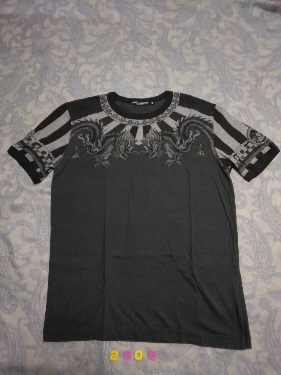 > 2506ドルチェ&ガッバーナ前後マルチ龍プリント装飾クルーネックグレー色 半袖 Tシャツミラノ ジャパン