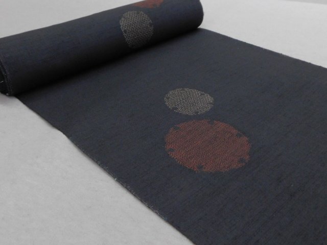 - 〔楽布特選〕P32750 墨色 雪輪柄 塩沢紬 解き洗い品 リ・オーダー オークション t