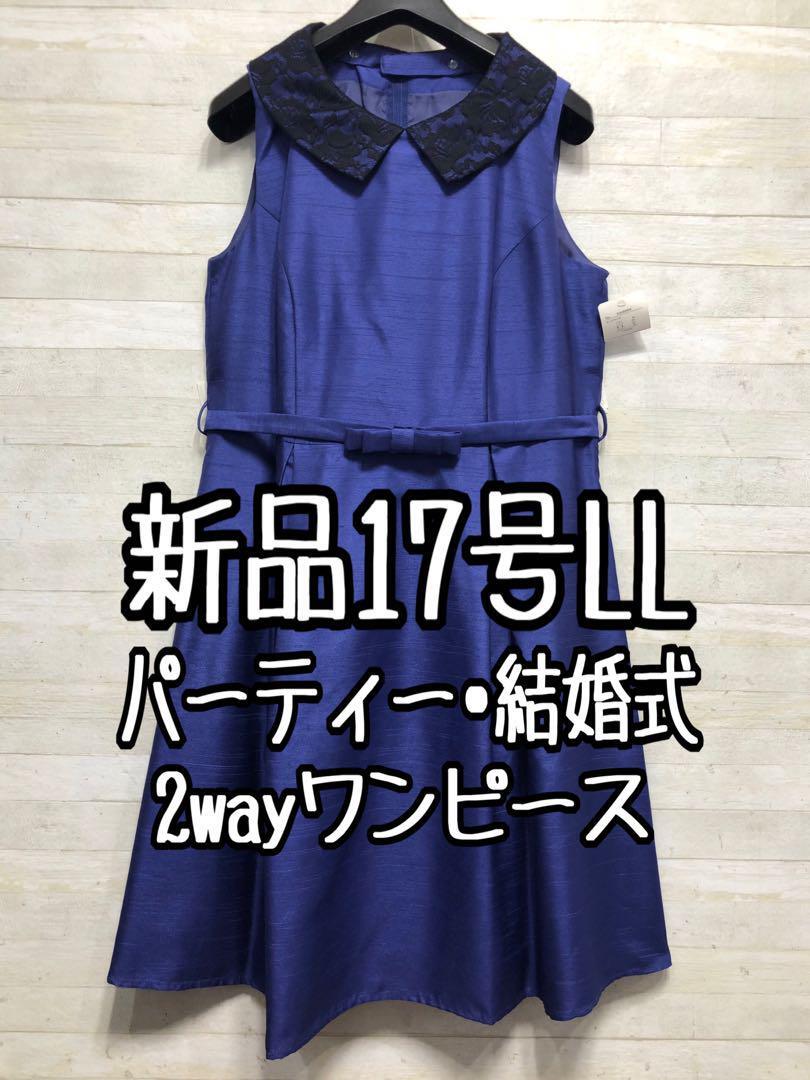 - 新品☆17号LL♪ブルーパープル系の2WAYパーティワンピース〇G329