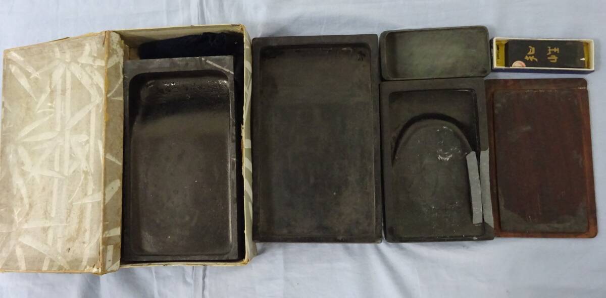 - (し-N-8014) 硯 まとめて売り 4個、墨1個 セット 書道具 書道 中国 水墨画 中古