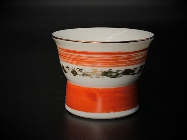 - 【骨董陶器】 大正~昭和期 レトロ のぞき金彩 『風流さかずき』 箱入り 未使用保管 L0326B