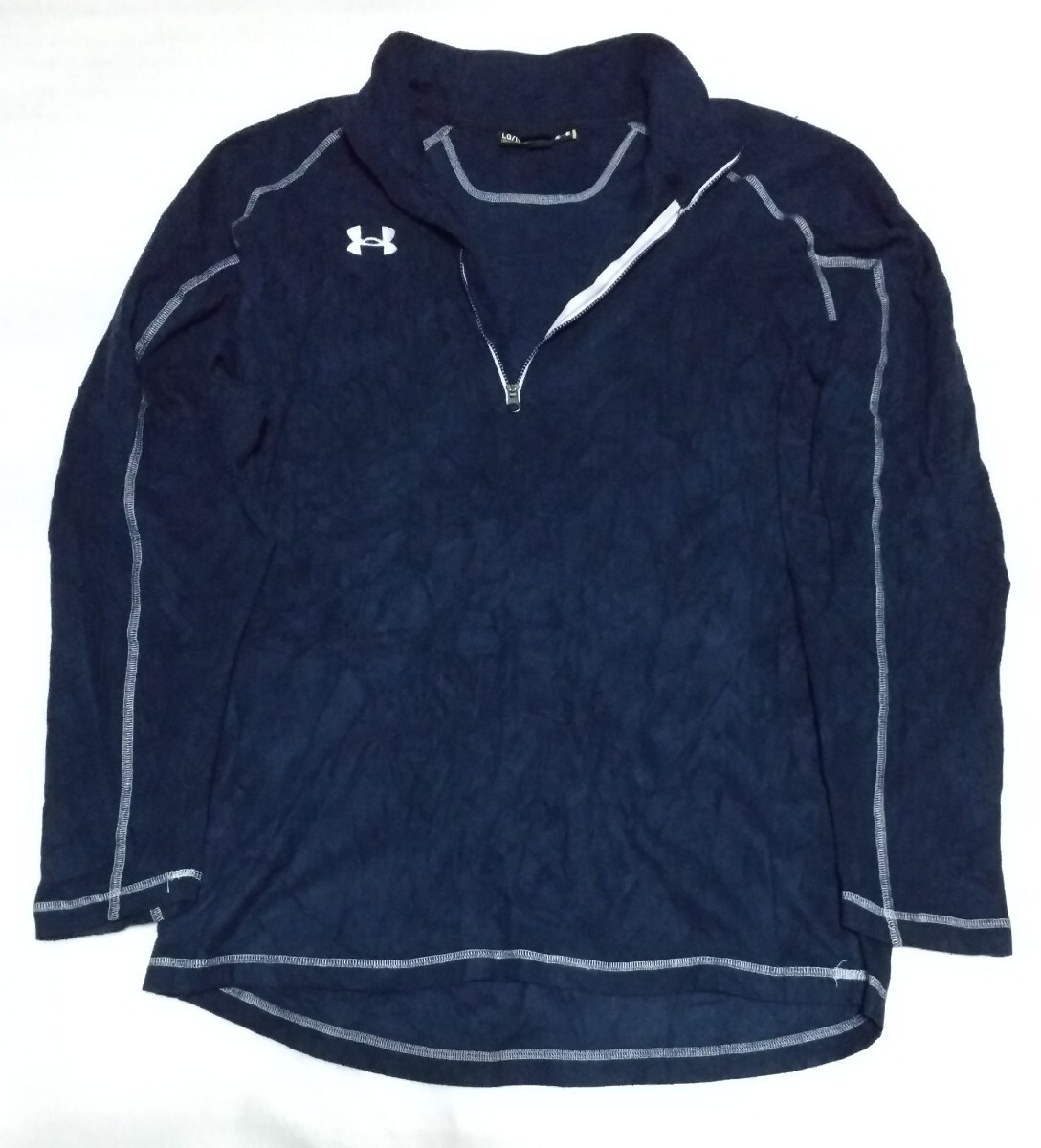 - ☆UNDER ARMOUR サイズL襟付ハーフジップ長袖フリース ラグランLOOSEネイビー紺ストレッチ ファッション スポーツ ウェア アンダーアーマー