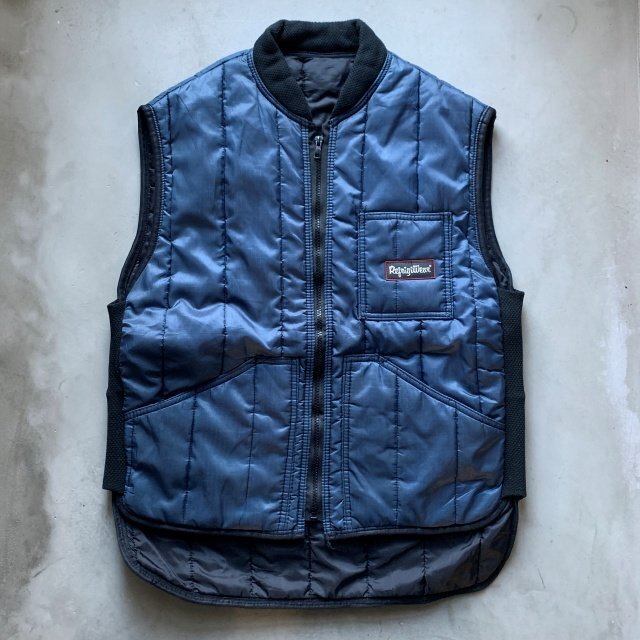 - 【M/L】Refrig Wear ジップアップ 中綿キルティングベスト ネイビー 紺色■ビンテージ オールド アメリカ古着 インナー リフリッジウェア