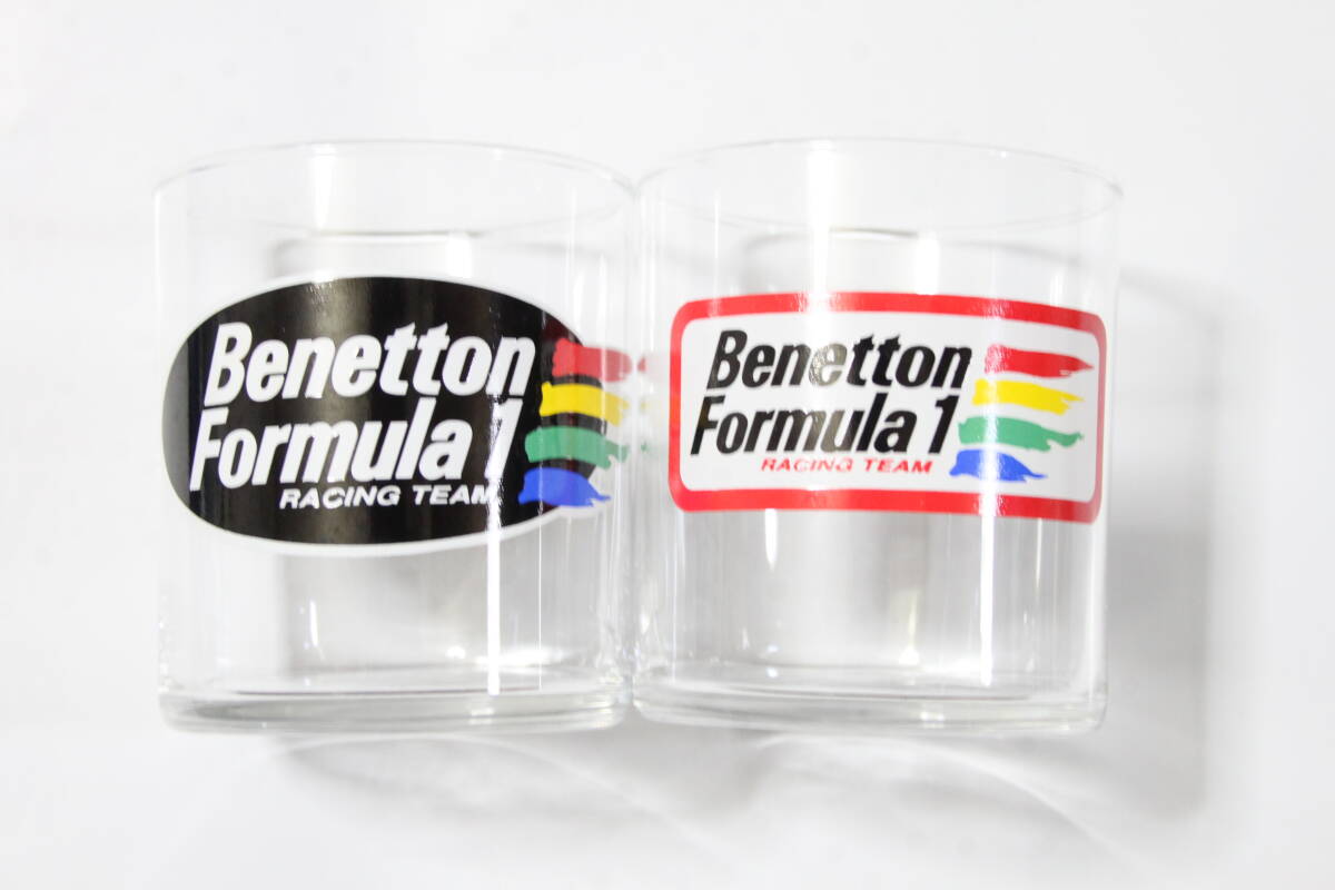 - 長期保存品 ベネトンフォーミュラ Benetton Formula グラス 2点 レーシングチーム ロックグラス コップ ガラスコップ おまけ 贈答品