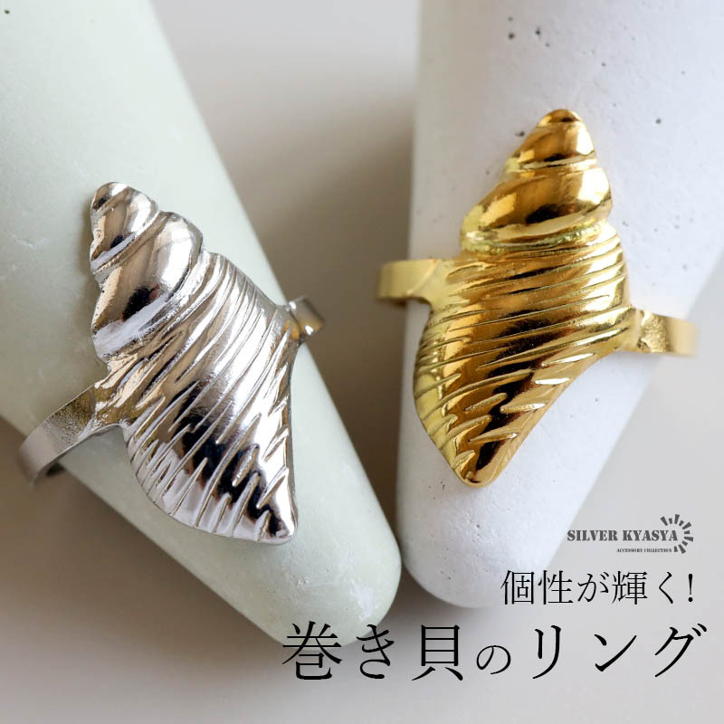- (ゴールド) ステンレス 巻き貝リング 貝殻 シェルリング ゴールド 18K GP フリーサイズ 女性 金属アレルギー対応