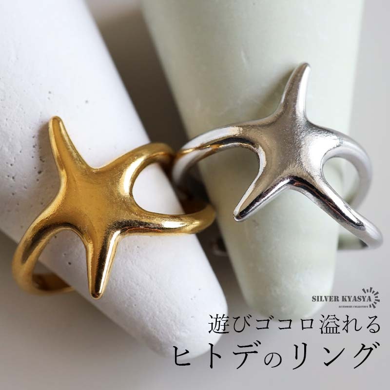 - (シルバー) ステンレス ヒトデリング スターリング シンプル ゴールド 18K GP フリーサイズ 女性 金属アレルギー対応