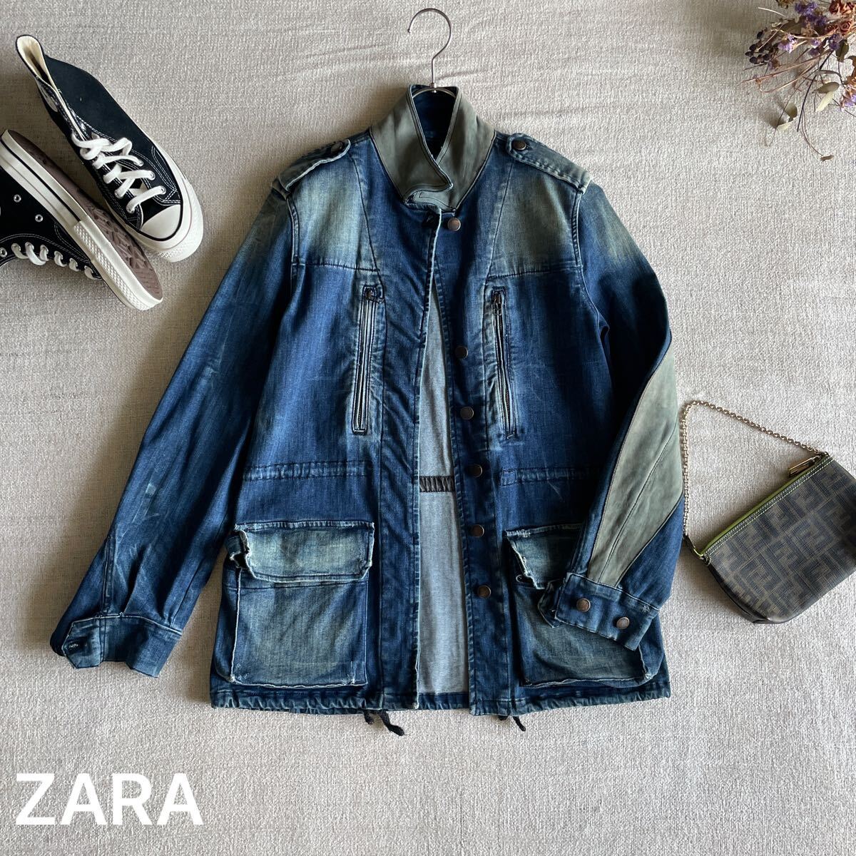 - ZARA デニムジャケット ビンテージ風 ザラ レディースSサイズ 女性用 長袖 トップス 色落ち加工 ダメージ加工 ジージャ アウター