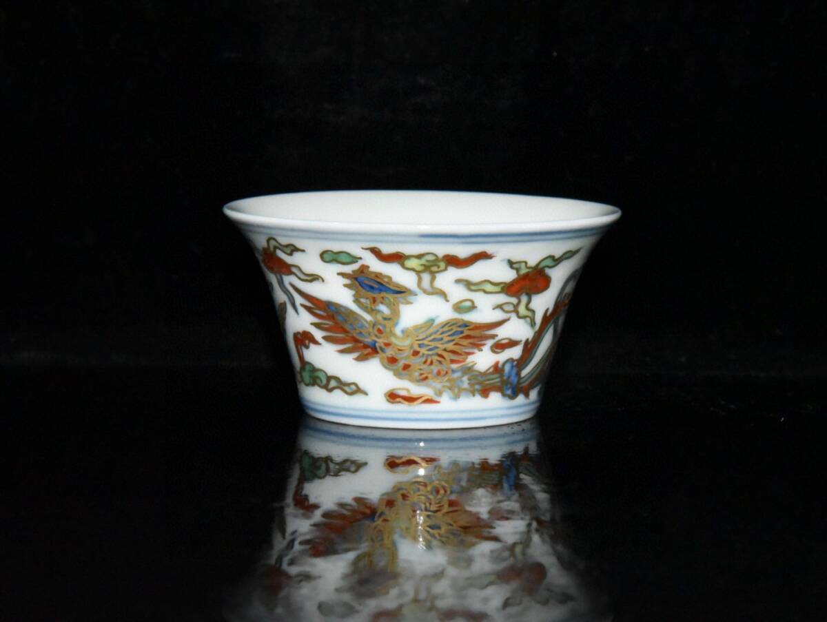 - 【超珍館蔵】明 成化年製款 古陶瓷品 斗彩 描金 鳳紋 馬蹄杯 置物 古賞物 古美術品 稀少珍蔵品