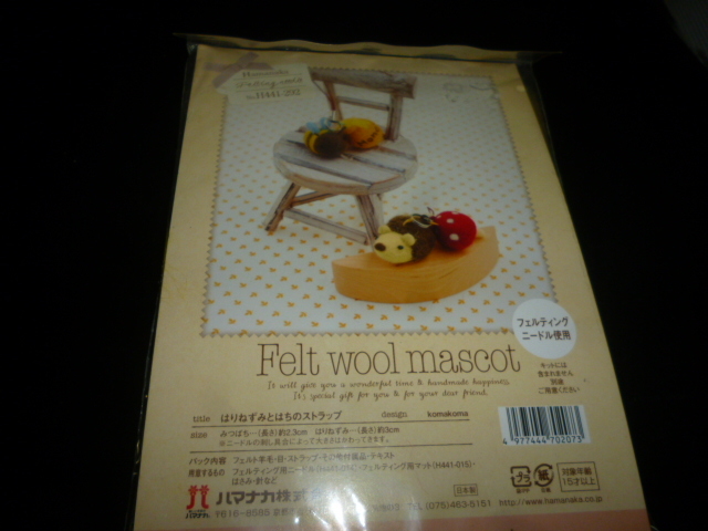 - 未使用 ハマナカ フェルト羊毛でつくるマスコット はりねずみとはちのストラップ 手作りキット