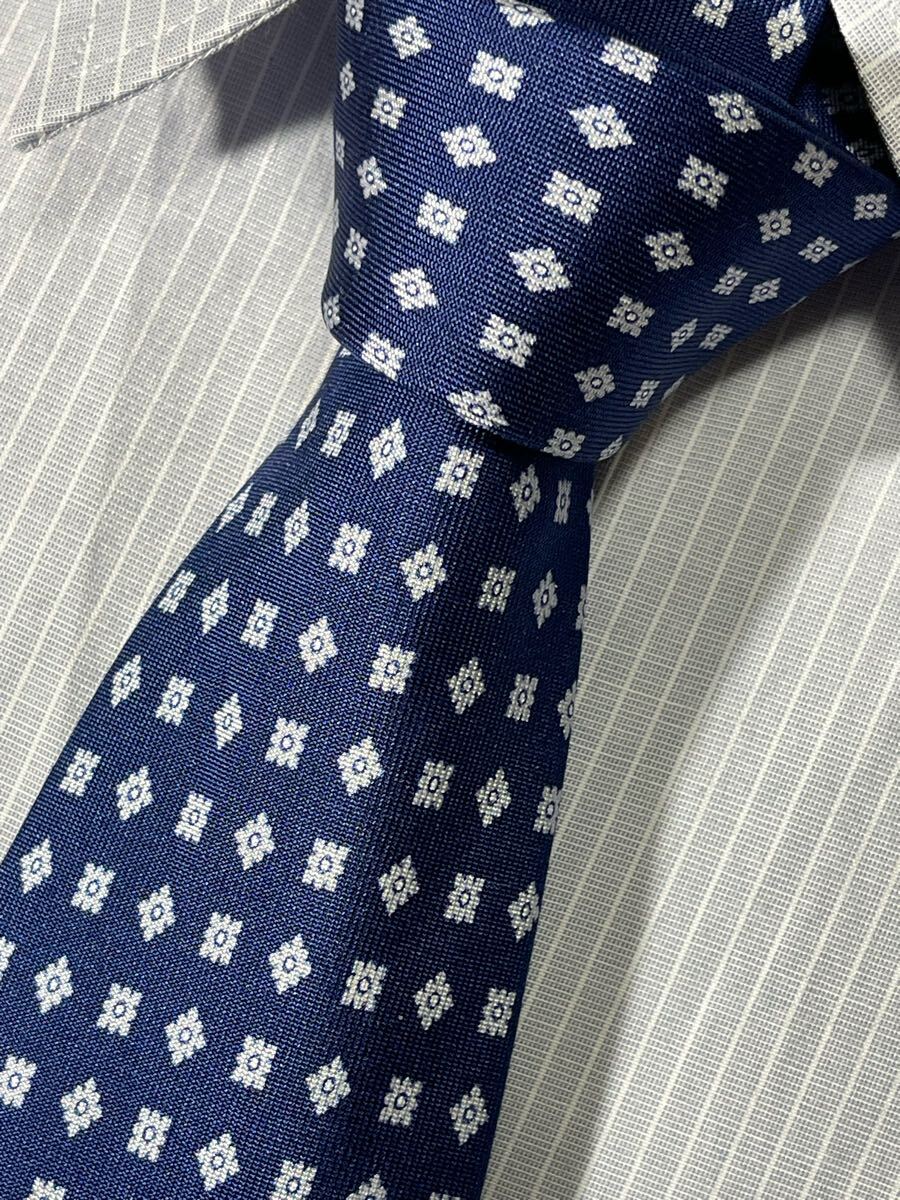 - 美品 ″Cilento Napoli″ チレント 小紋 セッテピエゲ ネイビー ブランドネクタイ 502259