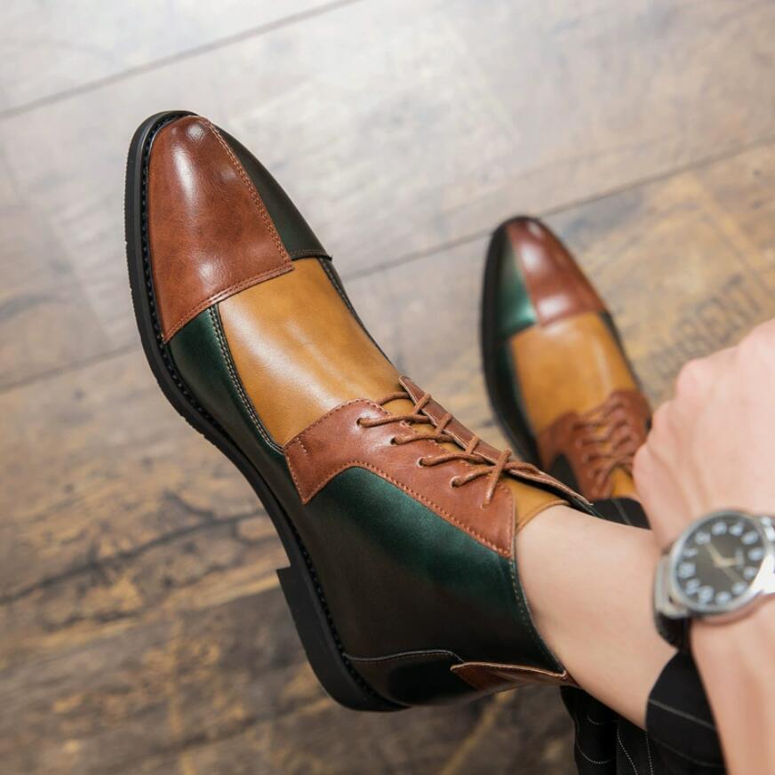 > 人気新作24cm-28cmズ選ぶ / 配色切替シューズ*ショートブーツ ビジネスシューズ メンズ 外羽根 革靴 3色選択可 / グリーン
