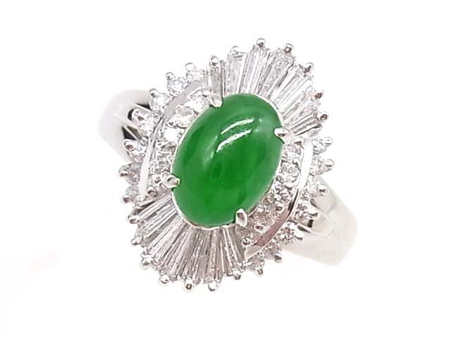 > g20459 Pt900 ヒスイ1.26ct D0.62ct リング USED 美品 8.7g #10 ソーティング付