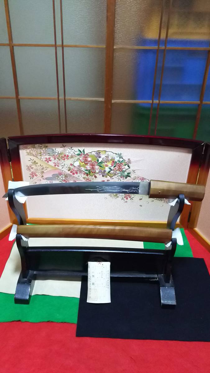 - (鳥羽)古刀期 平造り脇指(包丁正宗風、桶彫り、梅木彫り象嵌)白鞘