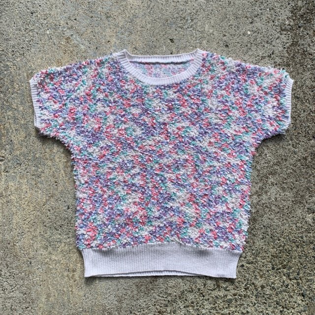 - 【レディース or キッズ】USA製 半袖ニット ポップコーントップス 白ベース■ビンテージ オールド アメリカ古着 子供服 No.2