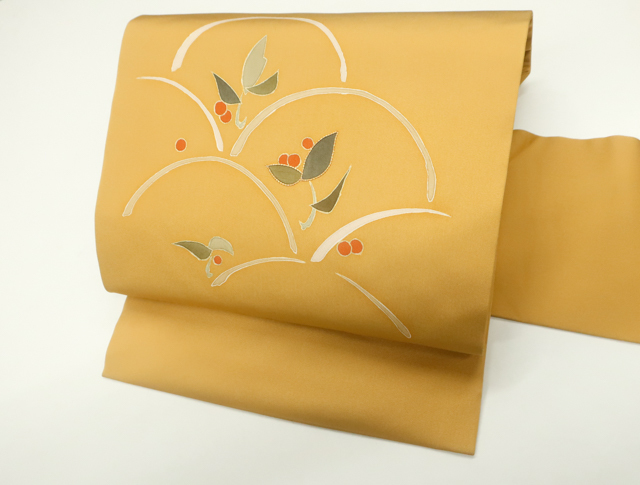 > 《古美術京松》【着物】九寸名古屋帯 塩瀬 お太鼓柄 金駒刺繍 R6B-64