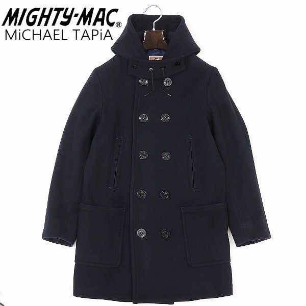 - ◆MIGHTY-MAC マイティーマック×マイケル タピア アンゴラ混 ウール フーデッド ダブル コート 紺 ネイビー 38