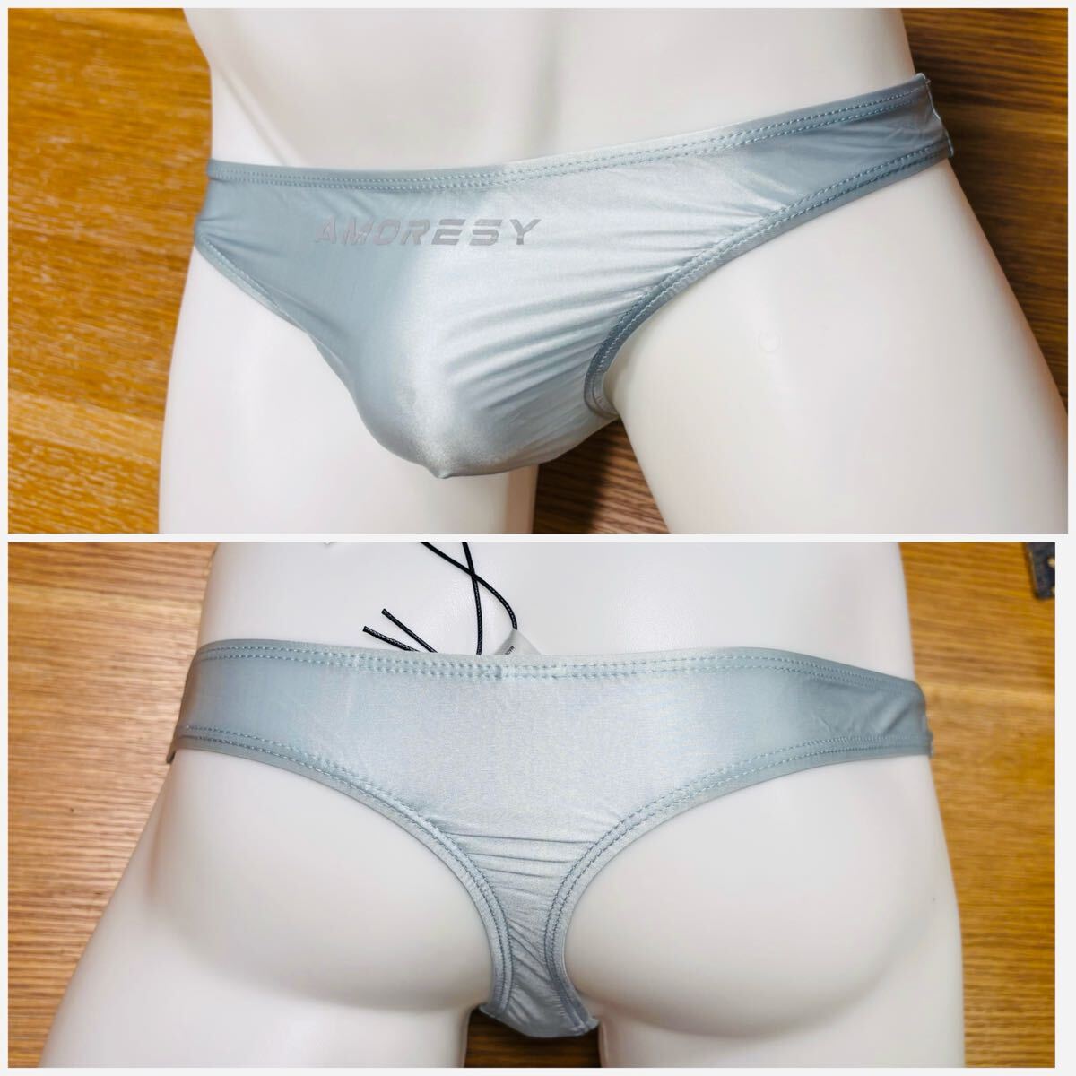 > AMORESY アモレシー シルキーローライズTバック スターライトブルー Mサイズ 新品 超光沢感 シースルー スケルトン セクシービキニ