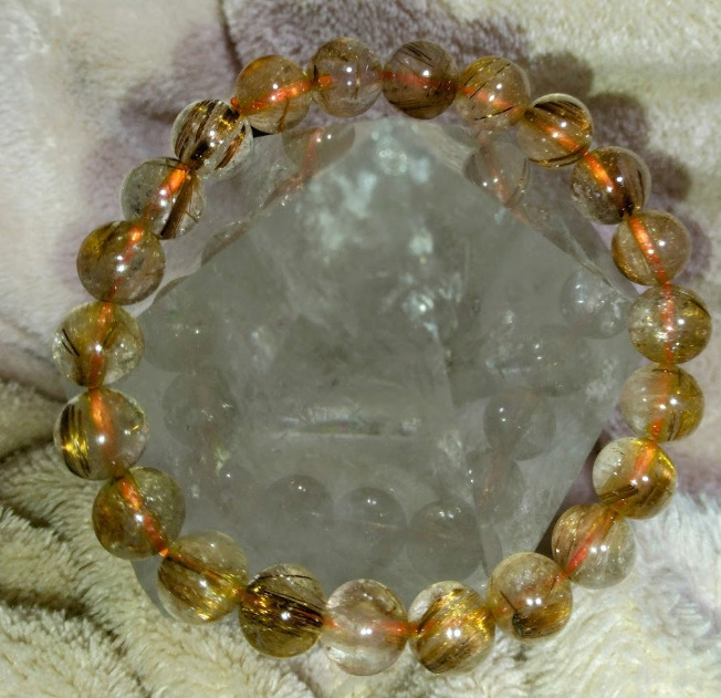 - 黄金色天然ゴールドルチルクォーツ ブレスレット パワーストーン 天然石
